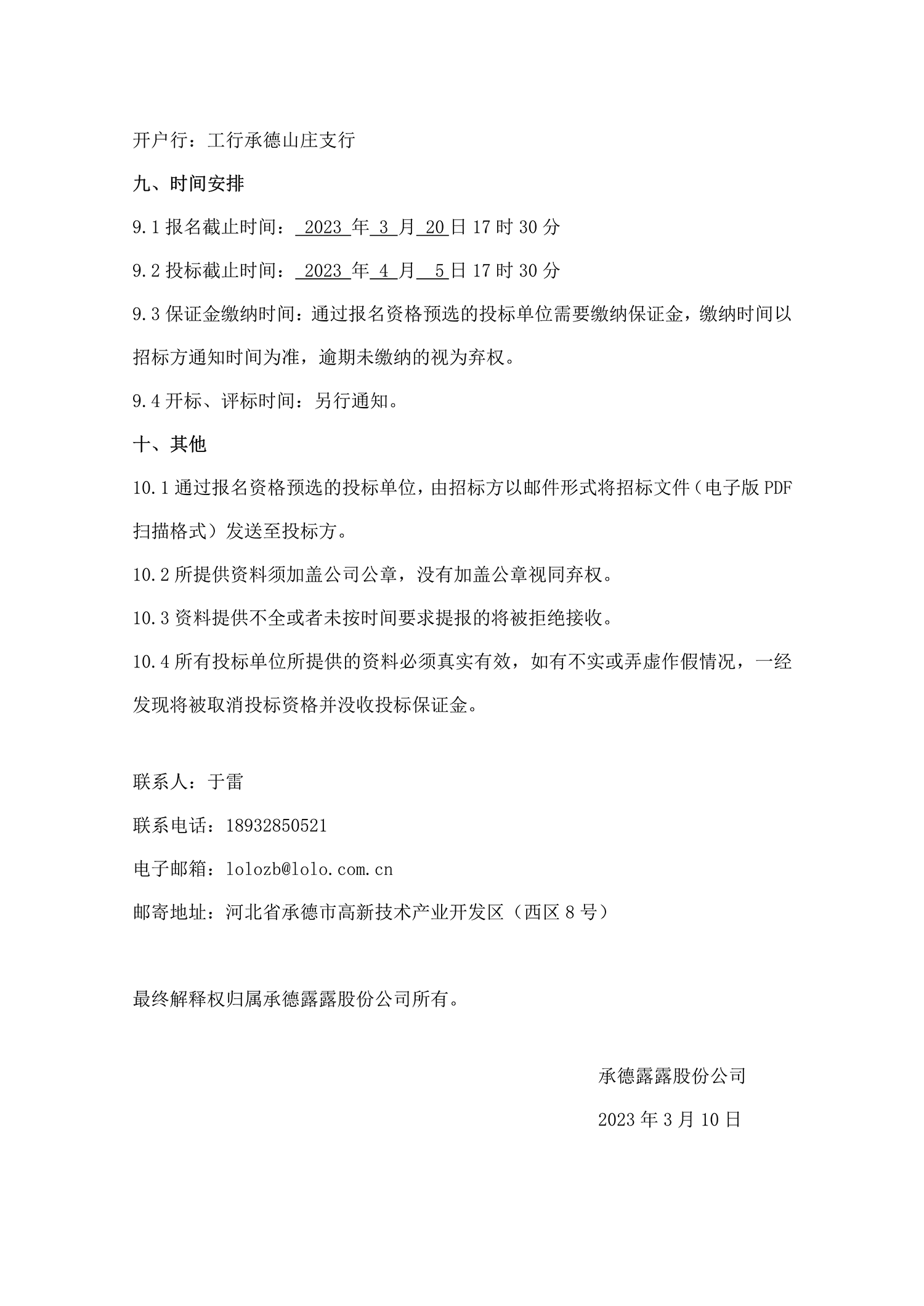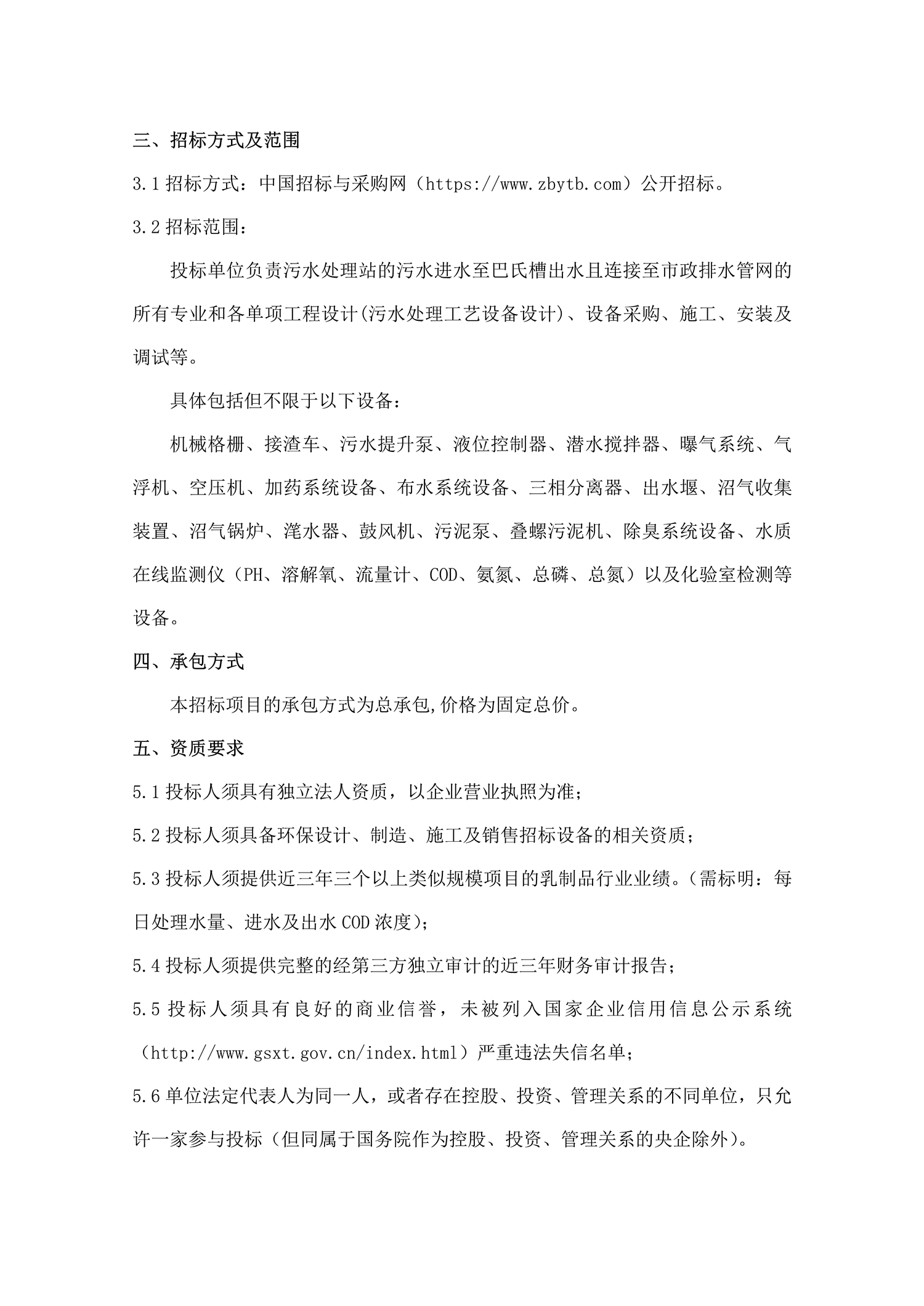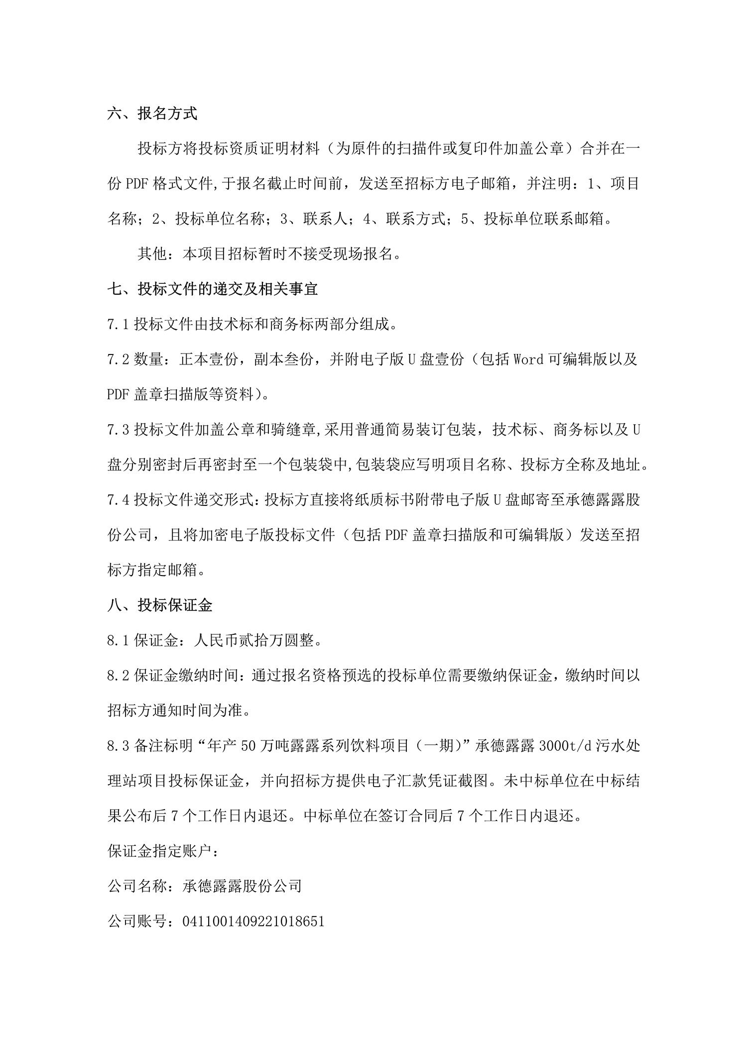 承德露露股份公司污水處理站招標公告